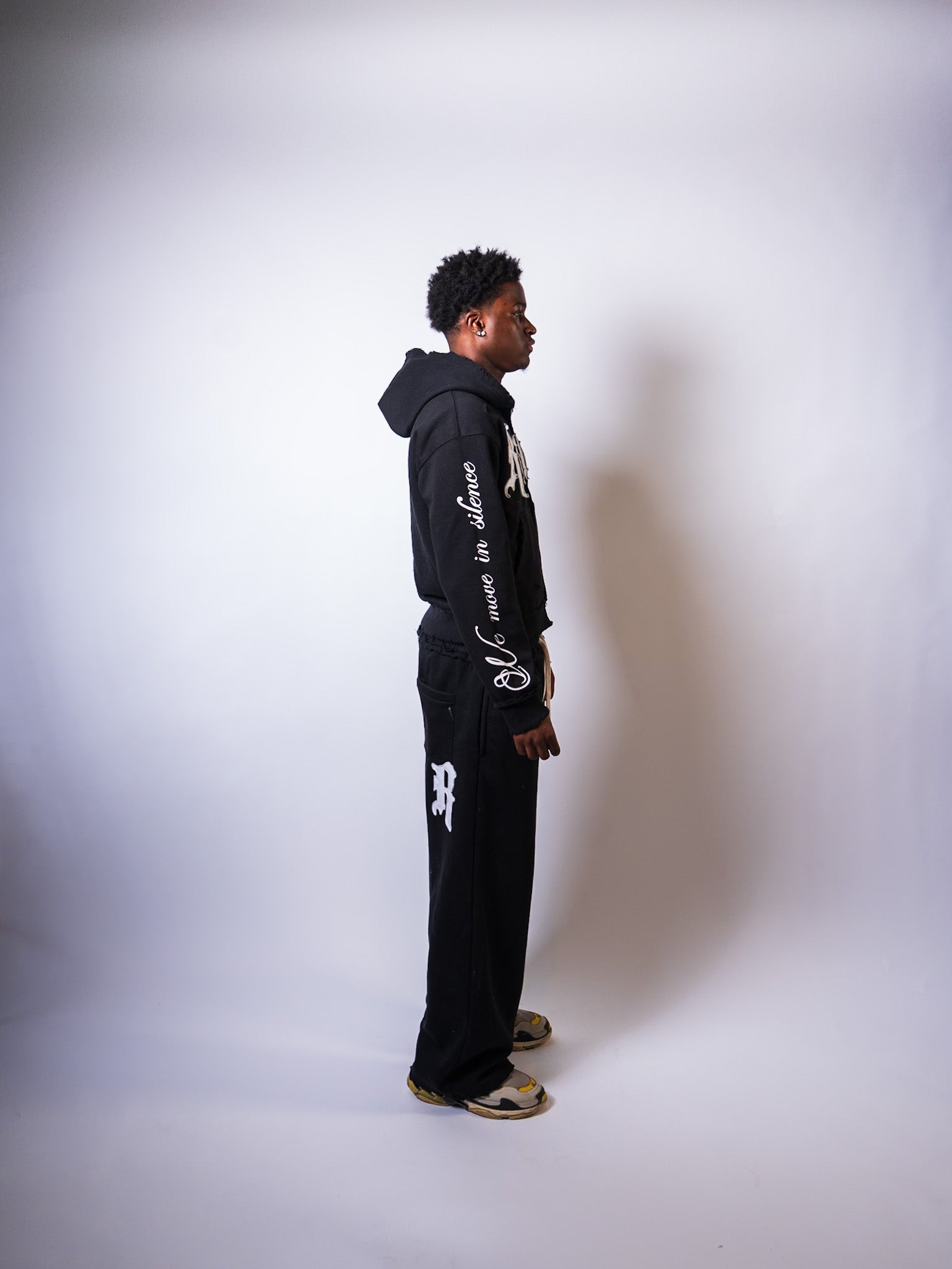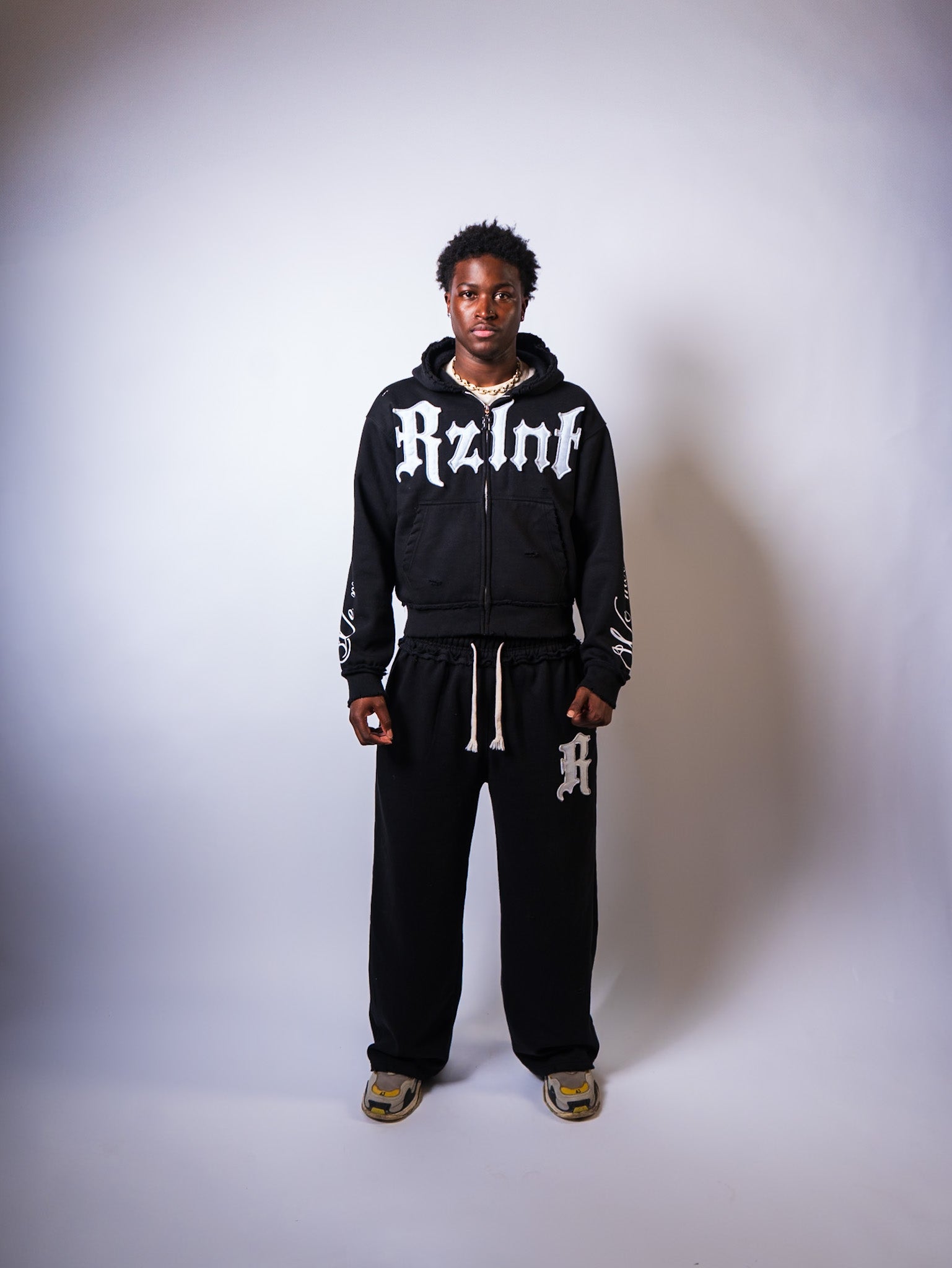 Details: Reverse stitch distressing. Custom metal zipper. Double hood for extra warmth